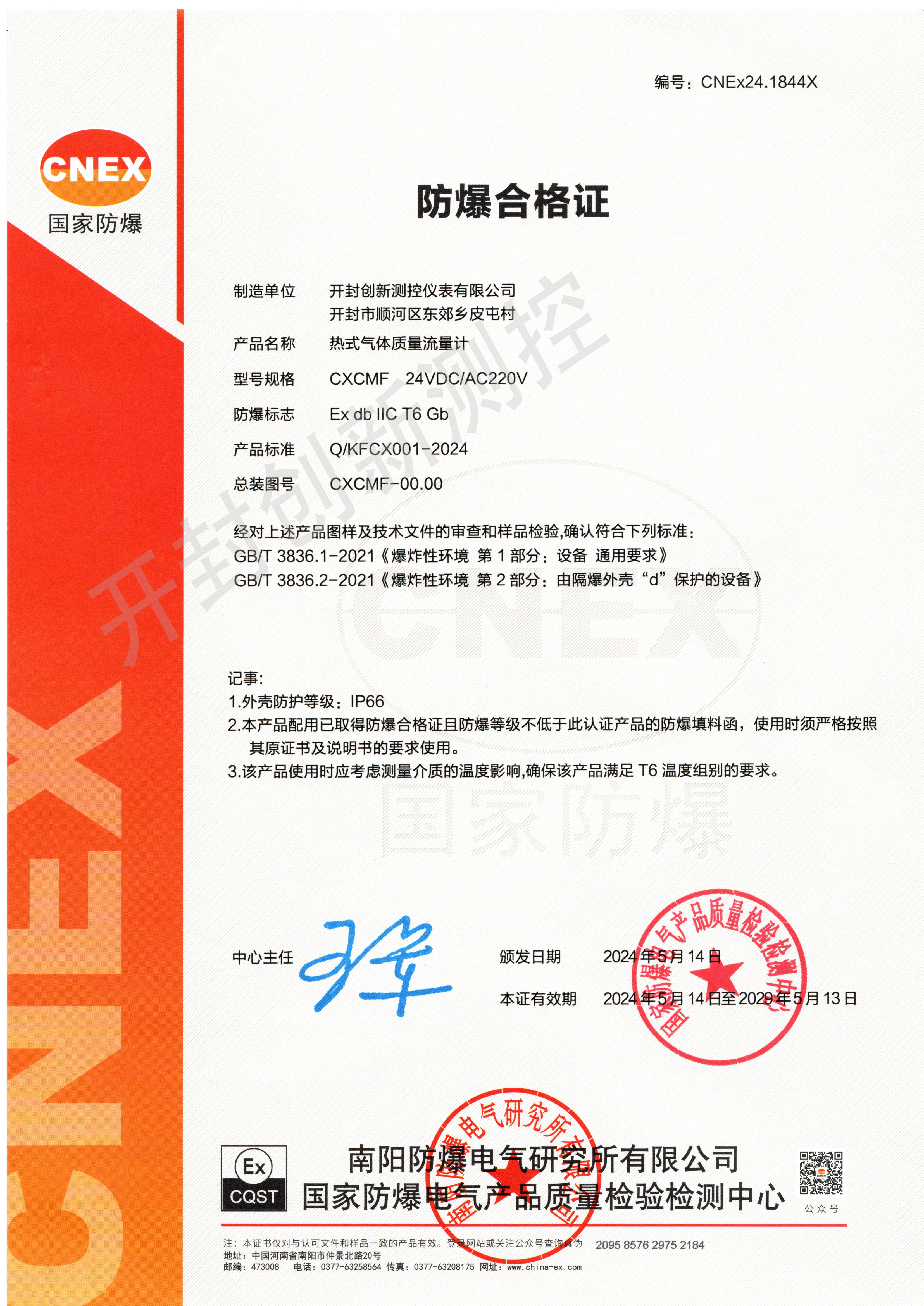 熱式氣體質(zhì)量流量計(jì)防爆合格證