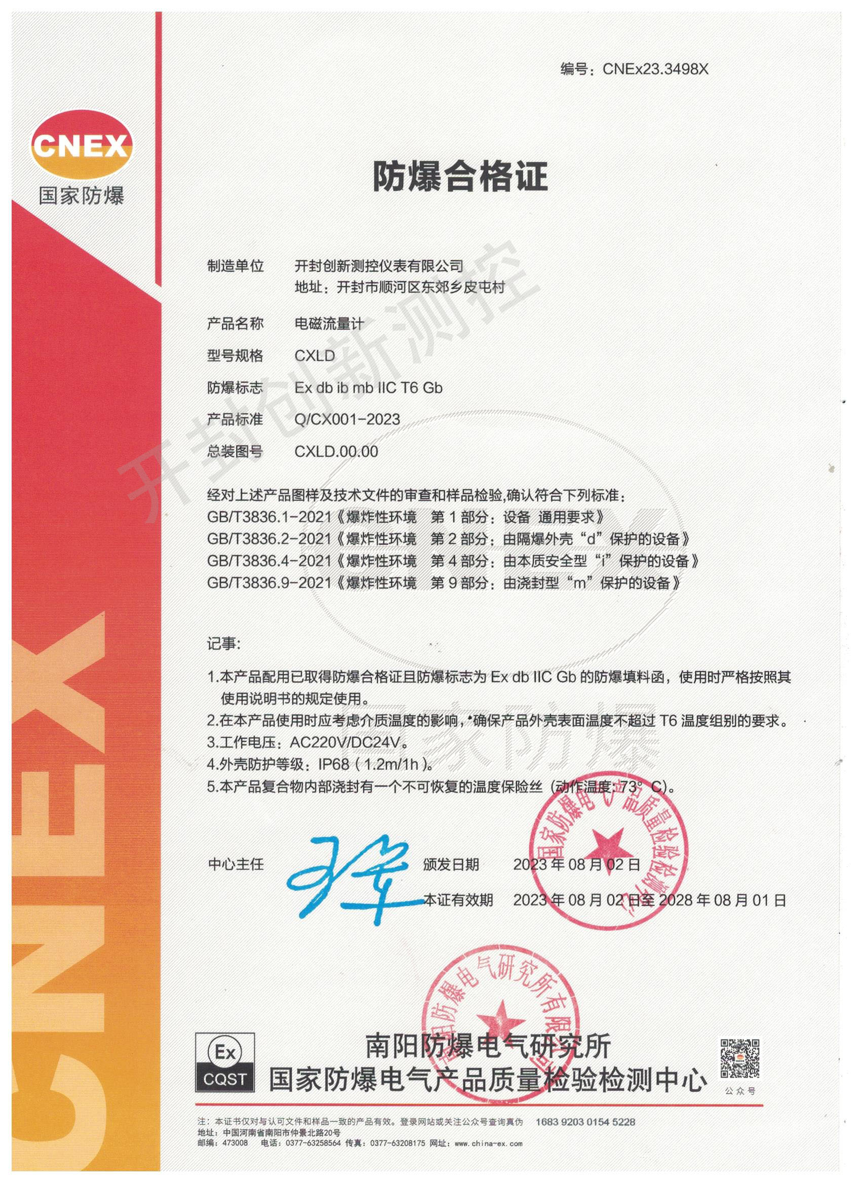 電磁流量計(jì)防爆合格證